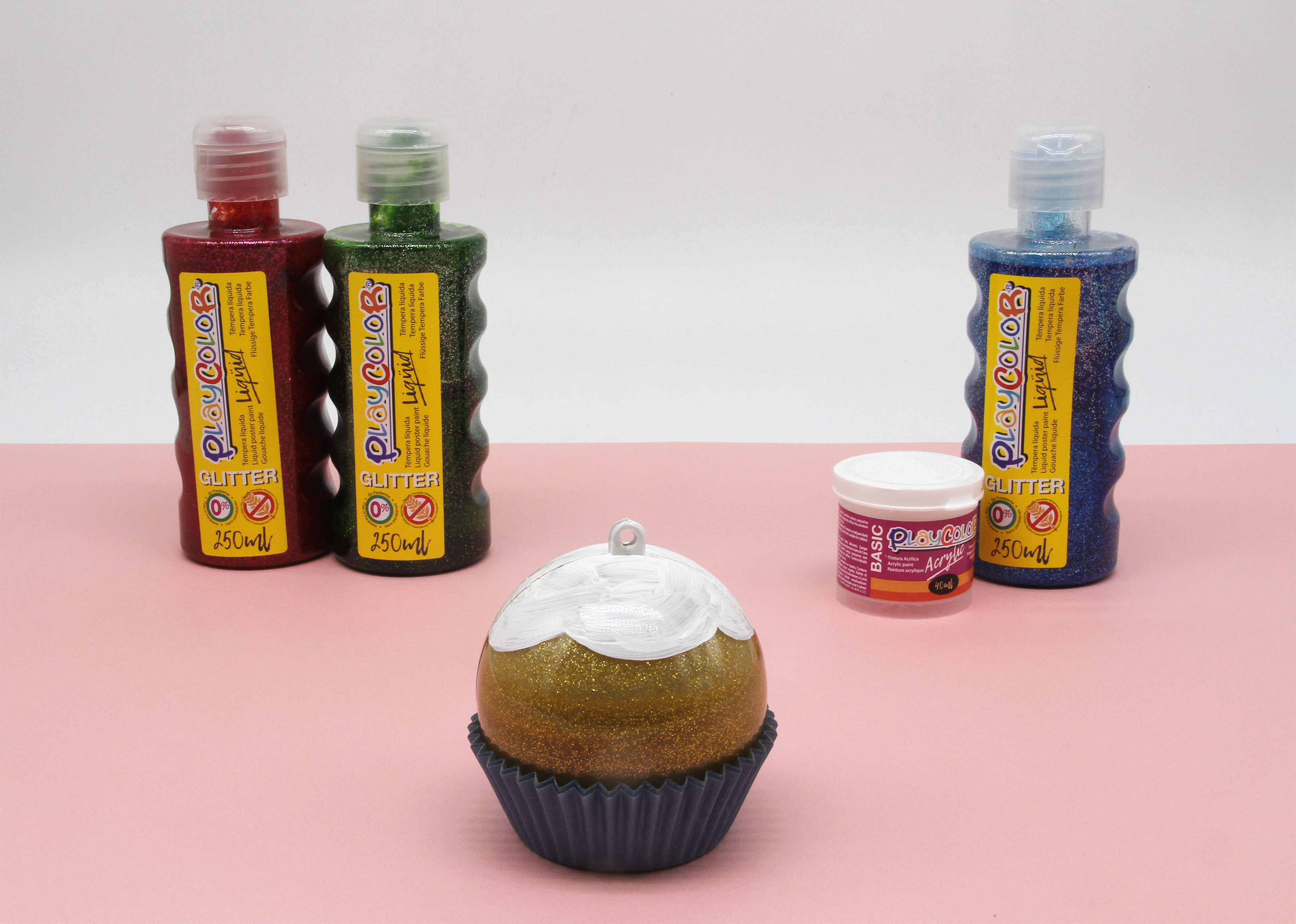 Utiliza PLAYCOLOR LIQÜID GLITTER para pintar el interior de las bolas, y deja secar bien antes de volver a cerrarlas.