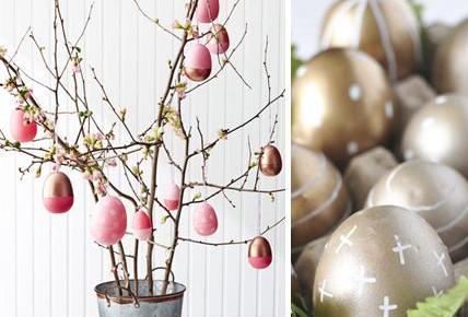 La primera señal de la llegada de la primavera, son los arboles floreciendo. Nos ha encantado esta idea que combina el rosa, el blanco y el dorado metallic. Y también para l@s más glamuros@s, una opción fácil de realizar: utilizad el dorado de playcolor metallic para pintar la base del huevo, dejadlo secar y entreteneros a hacer pequeñas decoraciones con un corrector de punta metálica.